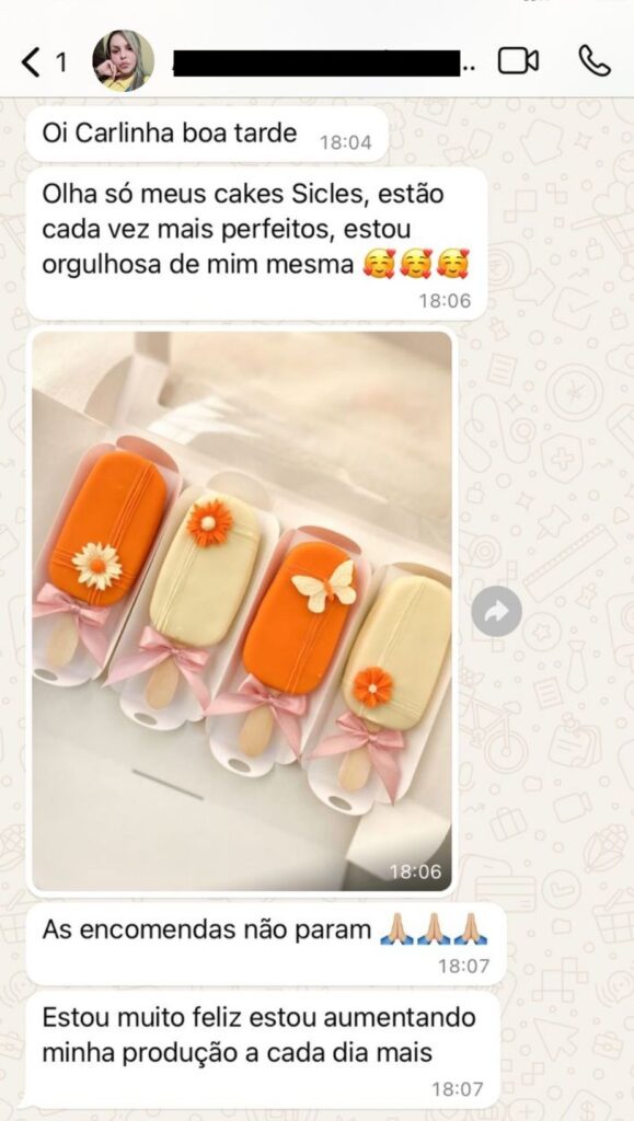O processo de fabricação é rápido e simples, e com o nosso curso você vai aprender do básico ao avançado mesmo que você nunca tenha feito um Doce antes. Entre 4 e 6 dias você já estará pronta para vender seus primeiros Cakes Sicles!